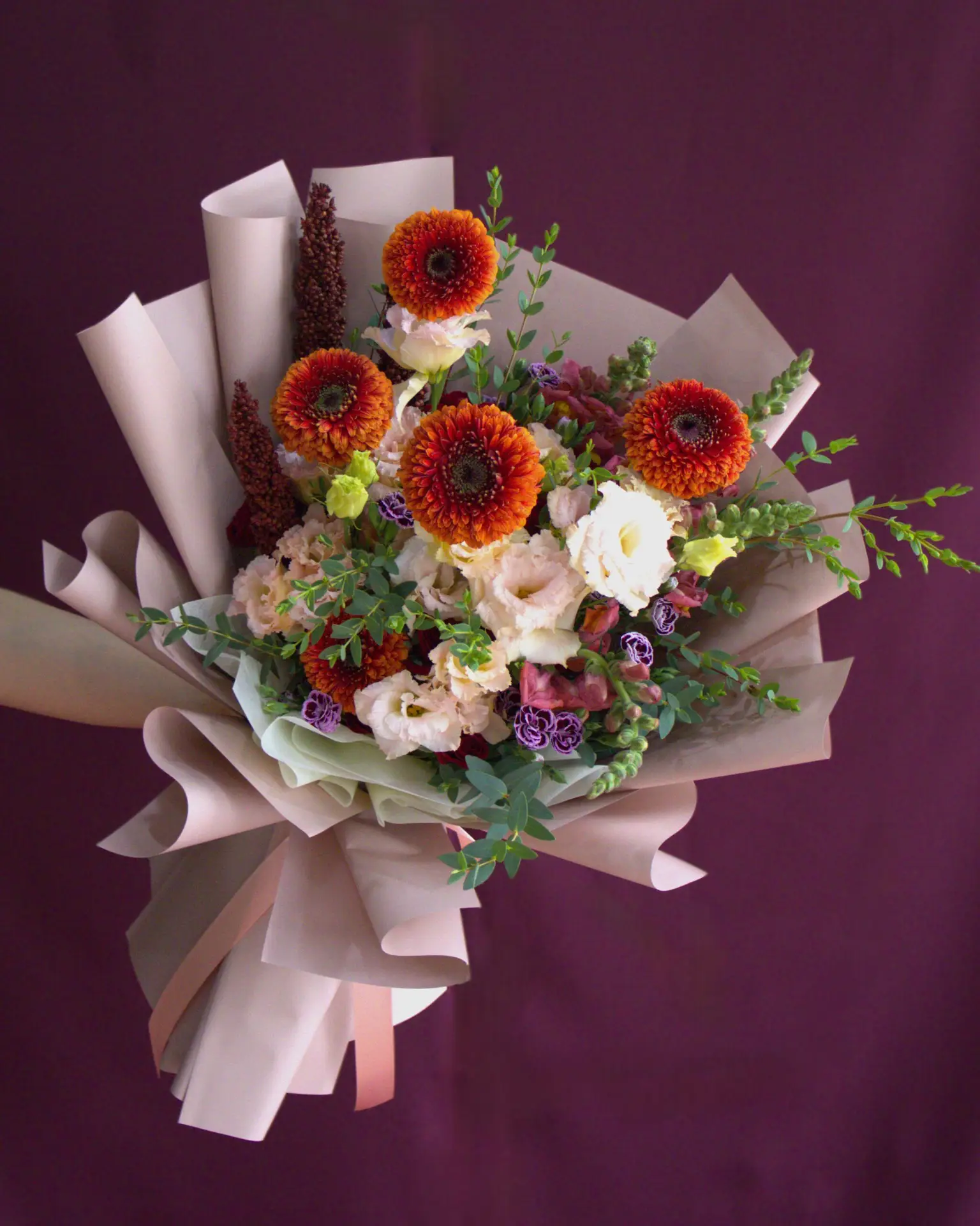 Flor: Lisianthus, Gerbera, Perrito, Parvifolia, Rafin, Sorgo.