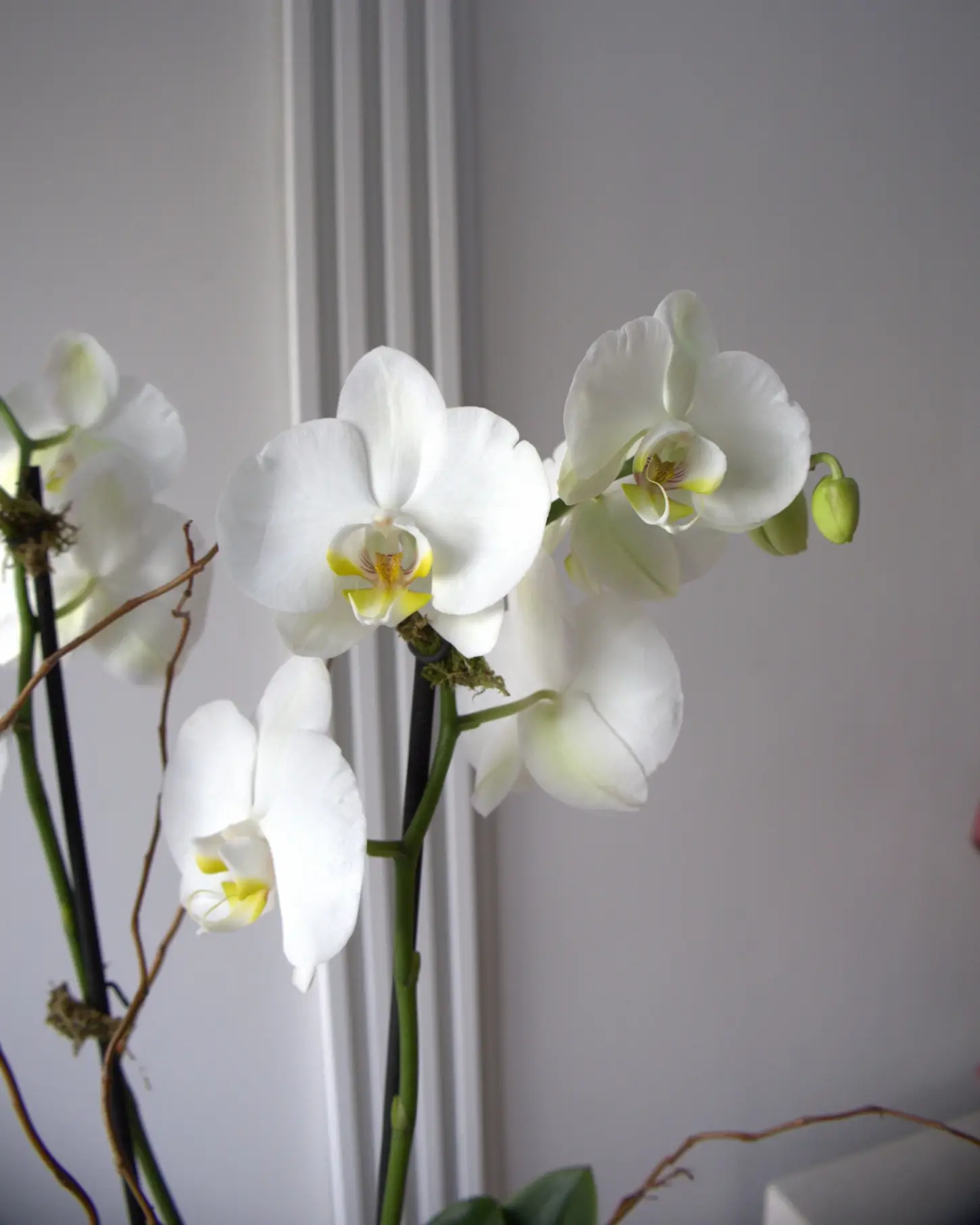 Las orquídeas Phalaenopsis disfrutan de un ambiente húmedo. Si el aire en tu hogar es muy seco, puedes aumentar la humedad alrededor de la planta colocándola sobre un plato con piedras y agua (sin que el agua toque el fondo de la maceta), o mediante un humidificador. El nivel de humedad ideal está entre el 50% y el 70%.