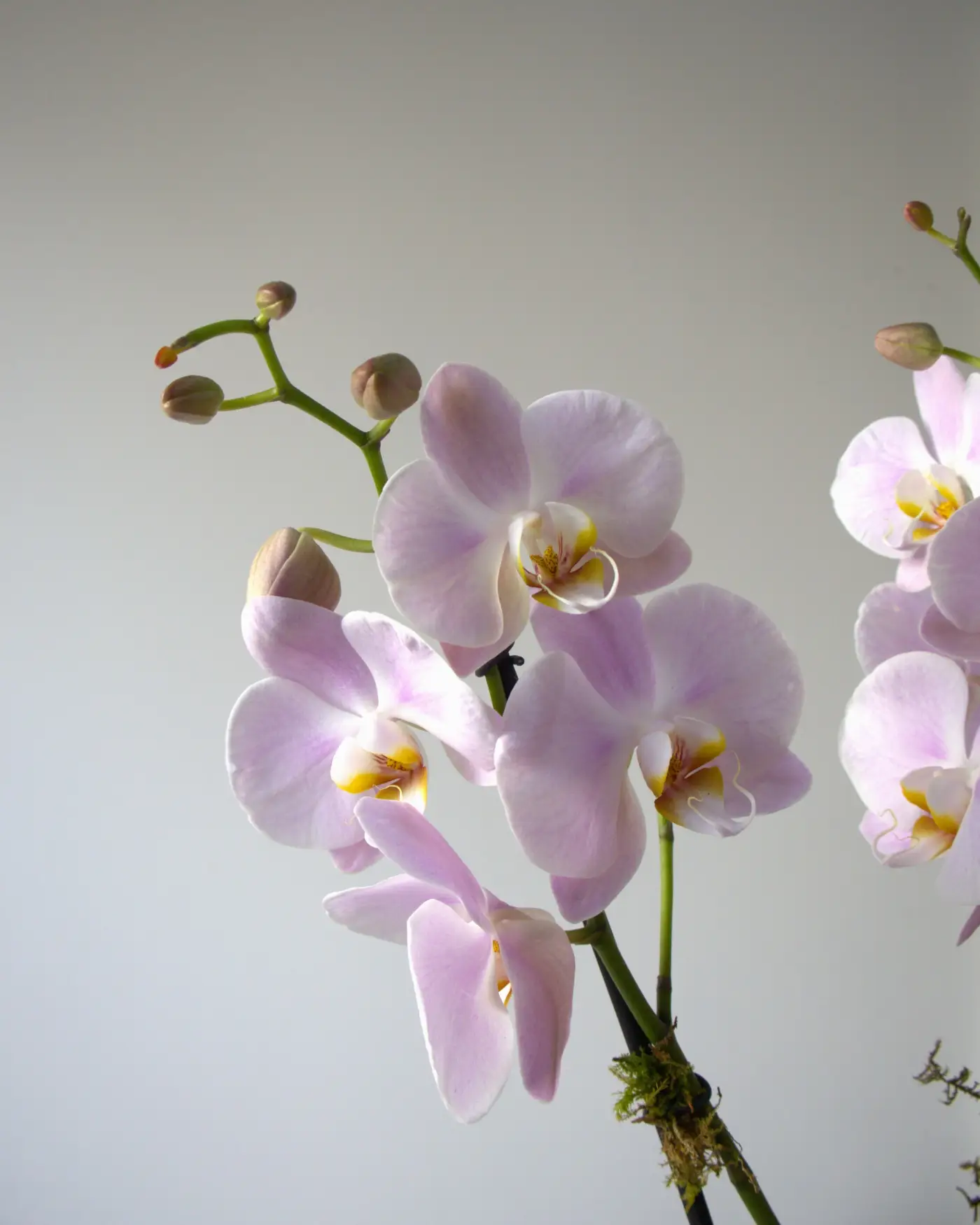 Las orquídeas Phalaenopsis disfrutan de un ambiente húmedo. Si el aire en tu hogar es muy seco, puedes aumentar la humedad alrededor de la planta colocándola sobre un plato con piedras y agua (sin que el agua toque el fondo de la maceta), o mediante un humidificador. El nivel de humedad ideal está entre el 50% y el 70%.