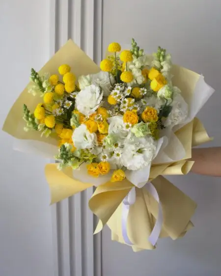 Este ramo de Tulipanes, Lisianthus y Rosas Inglesas es una obra maestra de la naturaleza y la artesanía. Cada una de las flores que lo componen ha sido cuidadosamente seleccionada y procesada para crear un efecto visual impresionante.